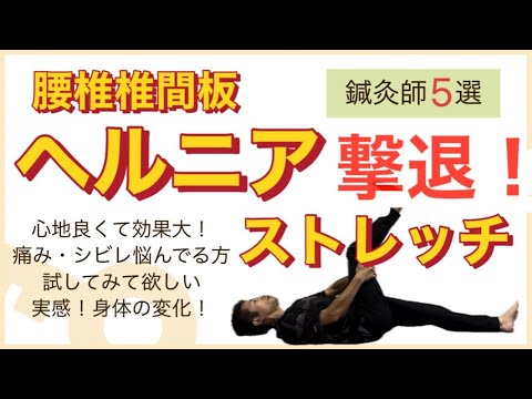 今回のストレッチでは腰の前弯(反り)をつくり、ヘルニアにかかる負担を軽減していきます。是非、一緒にやって腰椎椎間板ヘルニアの痛み・しびれを解消していきましょう。