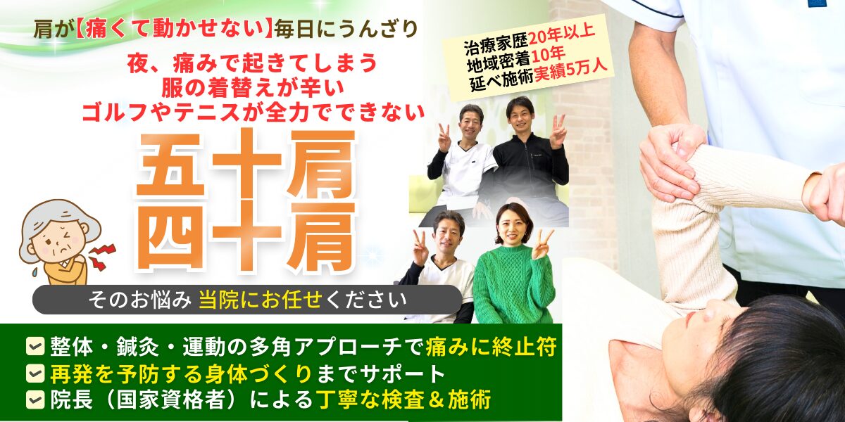 最近、肩の痛みで夜も眠れず、わずかな動作すら激痛でつらくなることはありませんか?