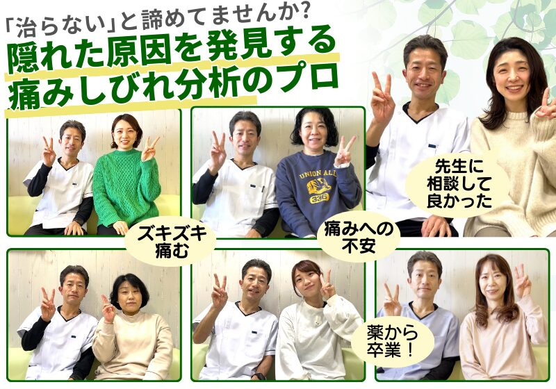 「良くなったと思ったのに、またすぐ症状が戻ってしまった…」という方にこそ、 当院のアプローチをお試しいただきたいと考えています。