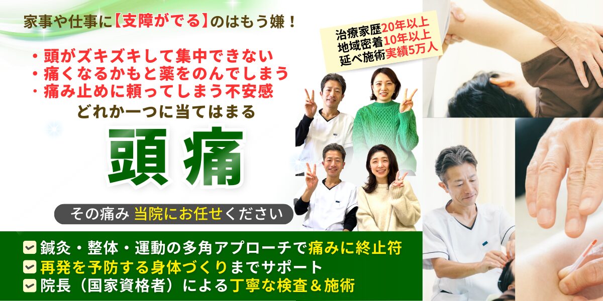 このように複数の原因に総合的にアプローチすることで、つらい頭痛の改善を目指します。