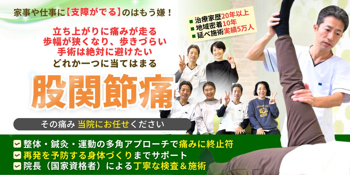 股関節痛の原因となる身体のゆがみを、整体で全身の筋肉や関節を調整していきます。