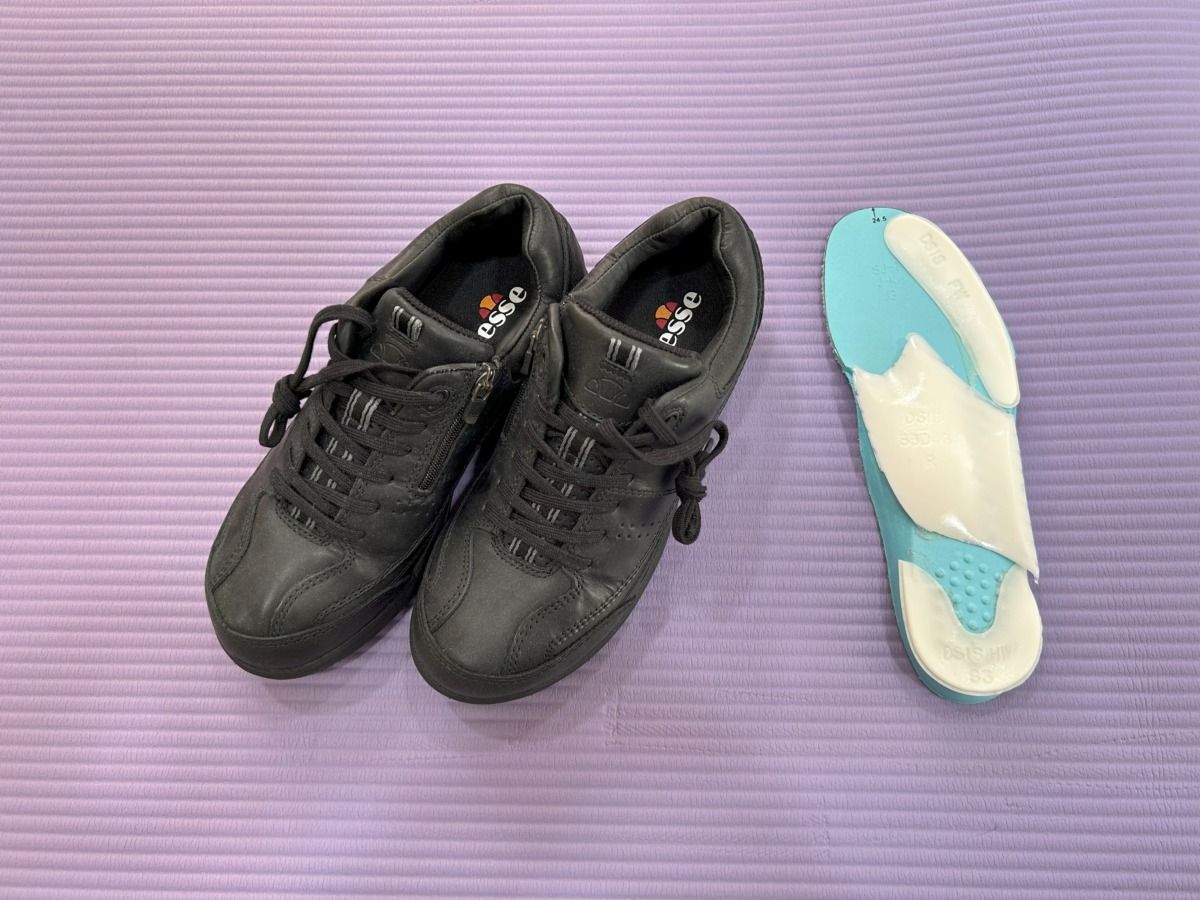 次におススメなのが「インソール療法」になります。歩行の癖を分析して、正しく足がまねけるように、中敷きに特殊パッドをつけて「オリジナルインソール」を作成していきます。