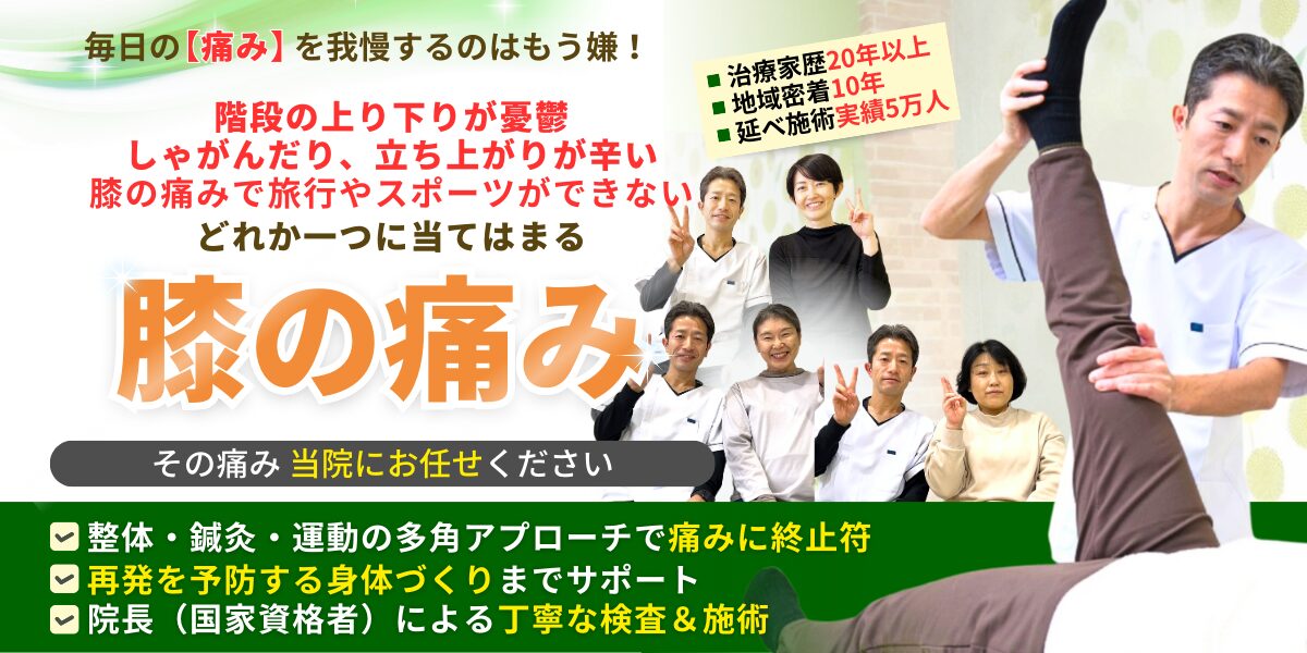 実は、加齢や軟骨の問題だけでなく、普段の姿勢や筋肉の使い方が痛みに影響しているケースも少なくありません。大切な膝を守り、これからの人生をもっと自由に動けるようサポートいたします。