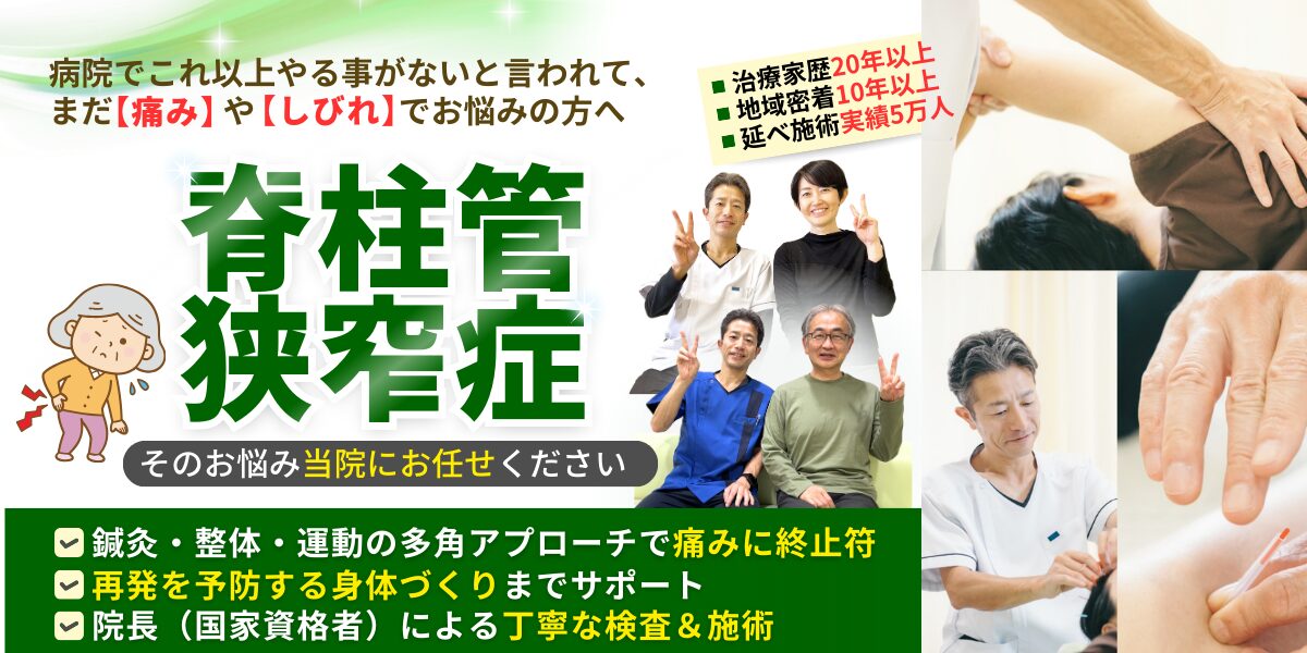 整体で身体の土台を整え、ガチガチにコリ固まった筋肉に鍼灸施術を組み合わせることで、狭窄部位にかかる負担が変わり、歩ける距離が格段に伸びたお客様がたくさんいらっしゃいます。