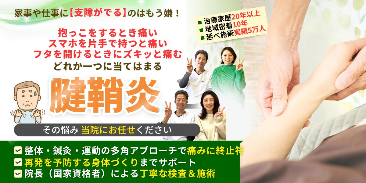 子育て中、スマホやパソコンの操作、抱っこやおむつ替えなど、日々の動作で知らず知らずに手首に負担がかかり、腱鞘炎が進行していませんか?