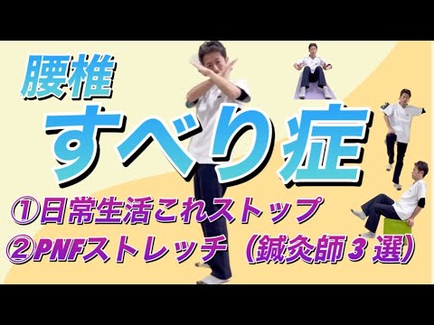 今回は前半で腰椎すべり症の方が日常生活で気をつける点をお伝えし、後半で腰椎すべり症の痛み・しびれを改善するためのPNFストレッチをお届けします。